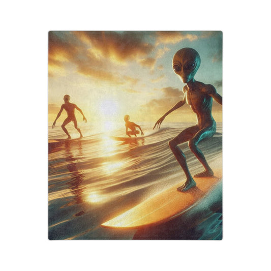 Aliens Riding a Rollercoaster Velveteen Microfiber Blanket