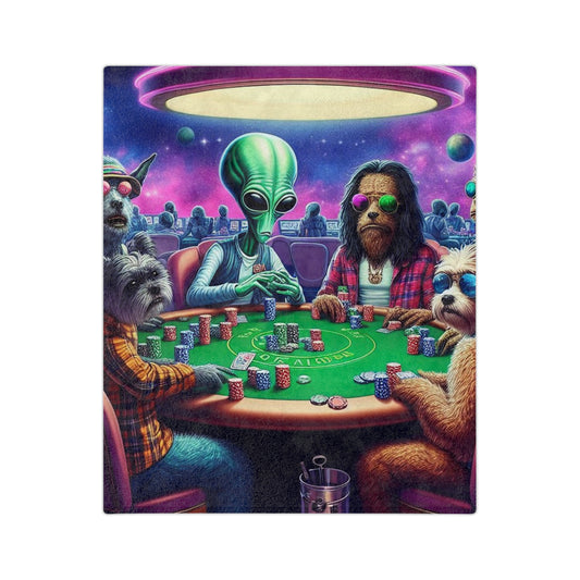 Poker Playing Dogs--with an Alien Velveteen Microfiber Blanket