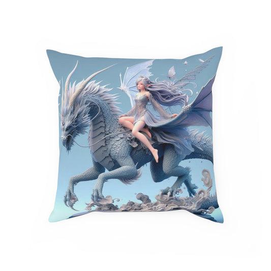 Blue Fairy & Dragon Throw Pillow