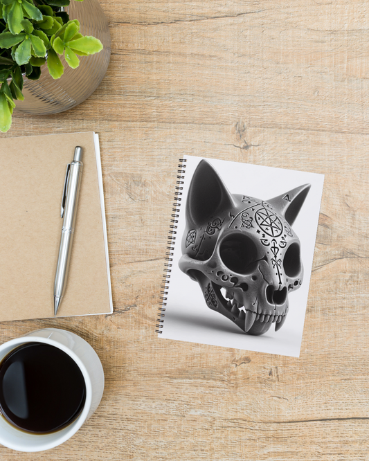 Arcane Cat Skull Spiral Journal
