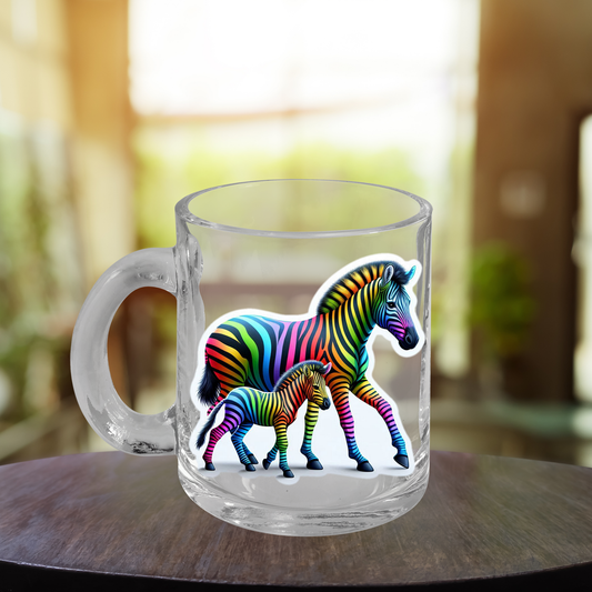 Glass Mug Rainbow Zebras