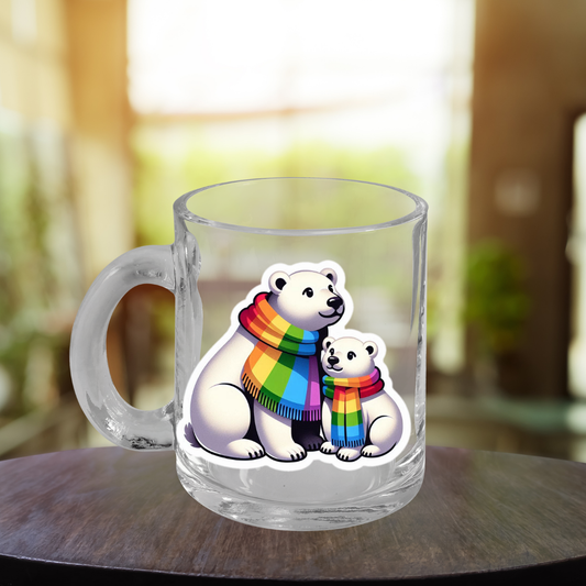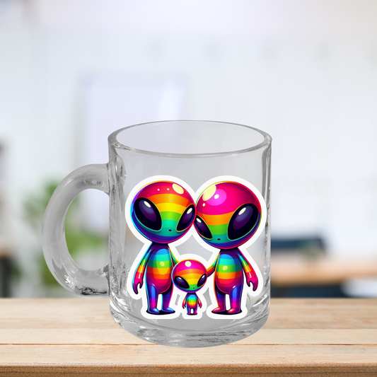 Rainbow Aliens Glass Mug with Handle, 10oz
