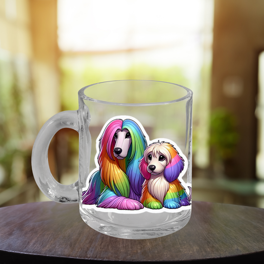 Rainbow Afghan Hounds Glass Mug with Handle, 10oz