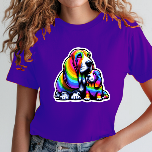 Rainbow Bassett Hounds Unisex Soft T-Shirt