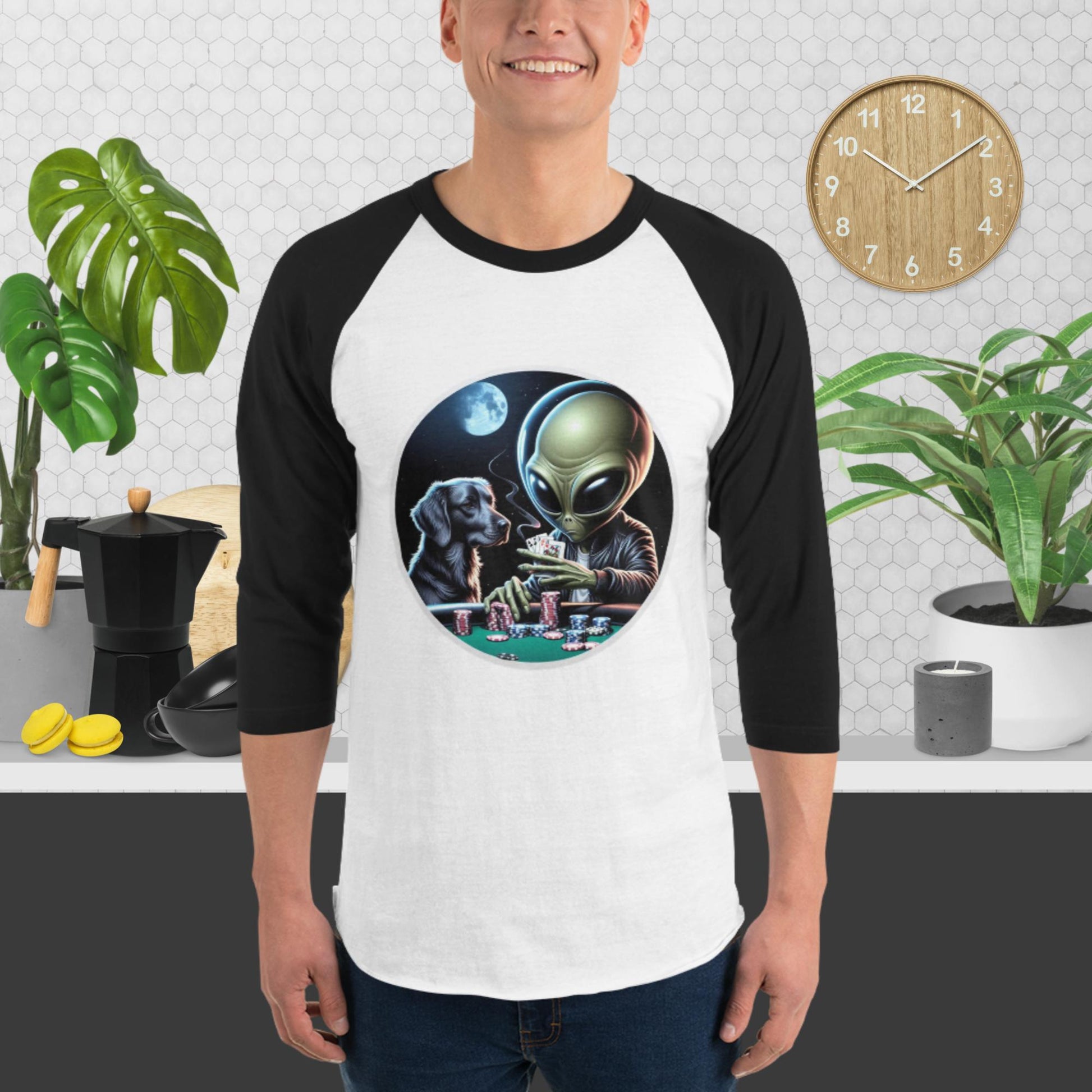 Bring some out-of-this-world fun to your wardrobe with this Alien Playing Poker with Dog Baseball Style Shirt. Featuring a quirky scene where an alien and a dog face off in a poker game, this shirt adds a playful twist to casual style. Perfect for game nights or everyday adventures, its comfortable fit and unique design are sure to spark smiles and conversations wherever you go.