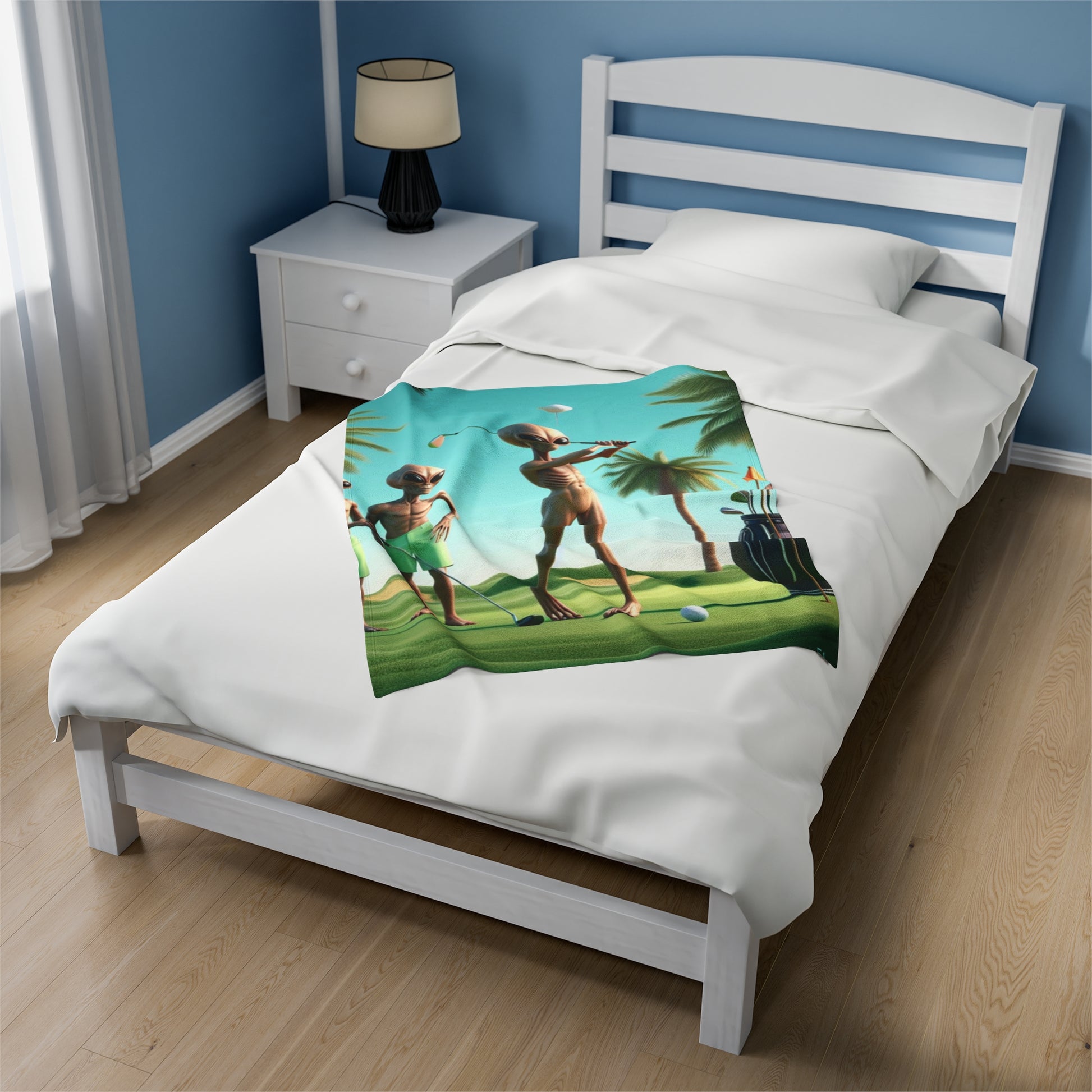 Golf might have started in Scotland, but it’s enjoyed everywhere—even if it’s a bit tricky to play in zero gravity! Crafted by humans and brought to life by AI, this velvety plush blanket adds warmth and comfort to any space. Soft and snuggly, it’s an ideal addition to your home or a fun gift. Don’t forget to ask about our personalization options! Choose from three cozy sizes: 30x40", 50x60", and 60x80".