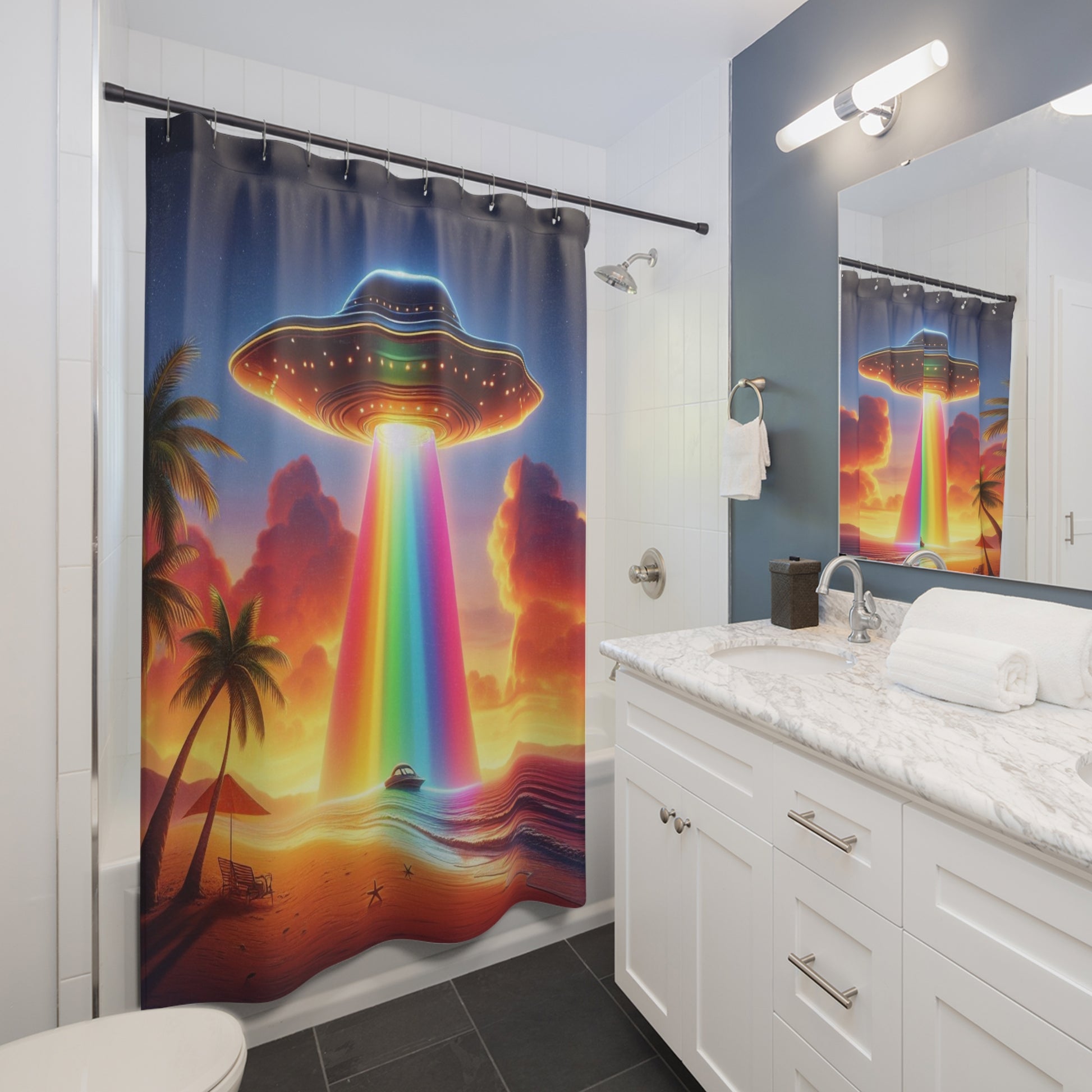 Transform your bathroom into a personalized oasis with our durable polyester shower curtain. Showcase your unique designs on its one-sided print, while its waterproof material keeps it looking new. Add your personal touch to every detail. Hooks not included. Size variance +/- 2".