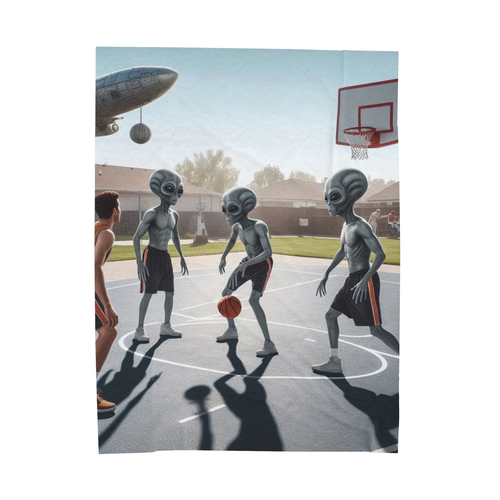 Aliens Playing Hoops Velveteen Plush Blanket