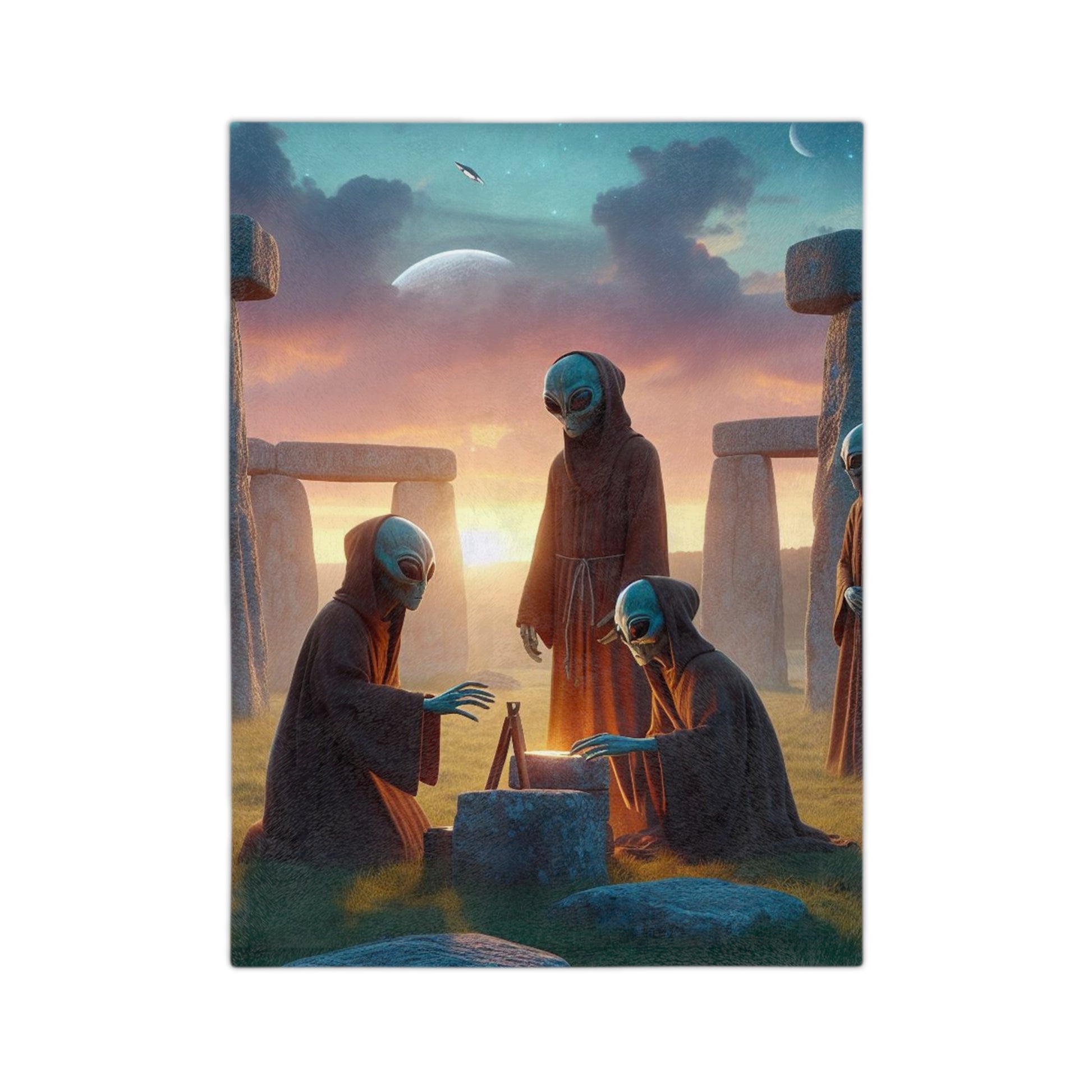 Aliens Stonehenge at Dawn Velveteen Microfiber Blanket