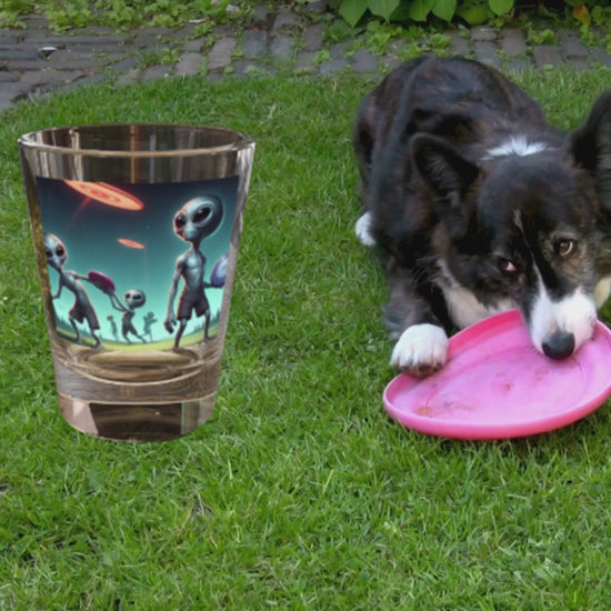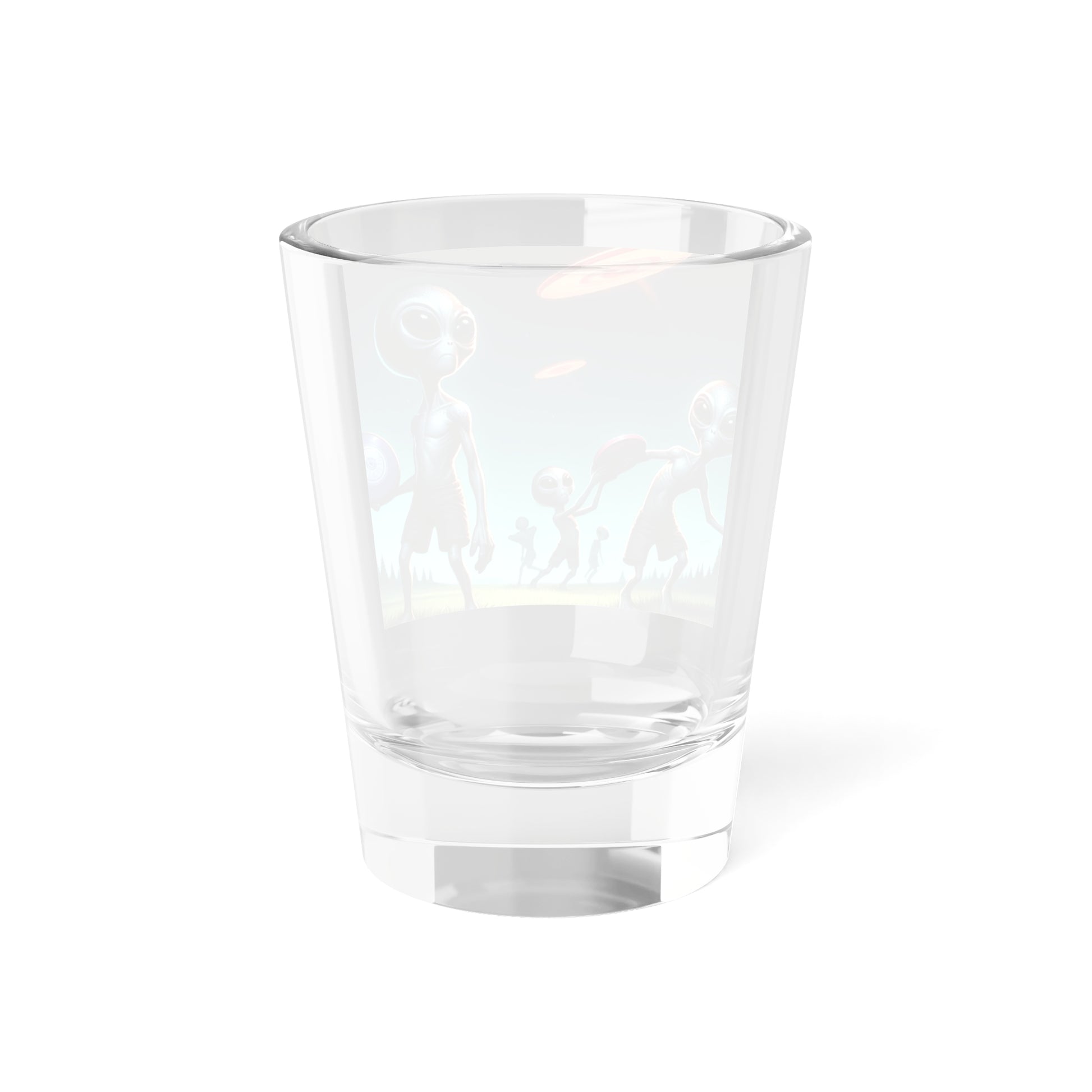 Join our alien friends in a game of intergalactic frisbee with this quirky and fun alien shot glass. Putt and toss your way to victory while showing off your love for frisbee. Don't miss out on this out-of-this-world experience!