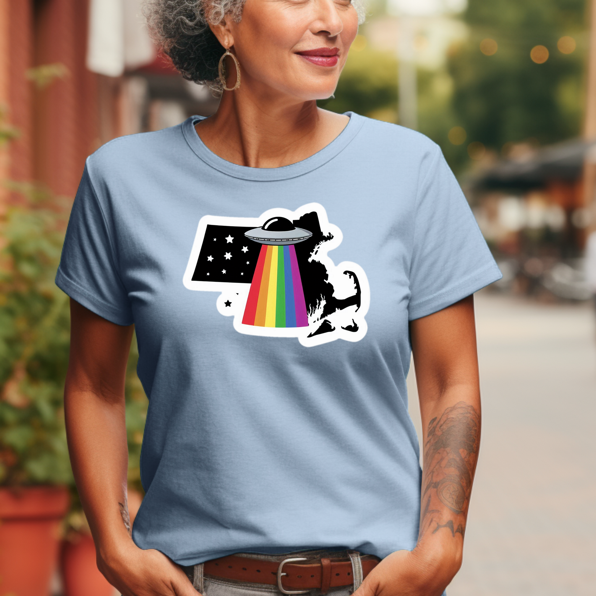 Your choice of the rainbow, on any color of the rainbow! Choose your state! Our PRIDE shows thru everywhere! The unisex soft-style t-shirt puts a new spin on casual comfort. Made from very soft materials, this tee is 100% cotton for solid colors. Heather colors and sports grey include polyester. The shoulders have twill tape for improved durability. There are no side seams. The collar is made with ribbed knitting to prevent curling damage. Colors may vary. Designed by humans with AI.