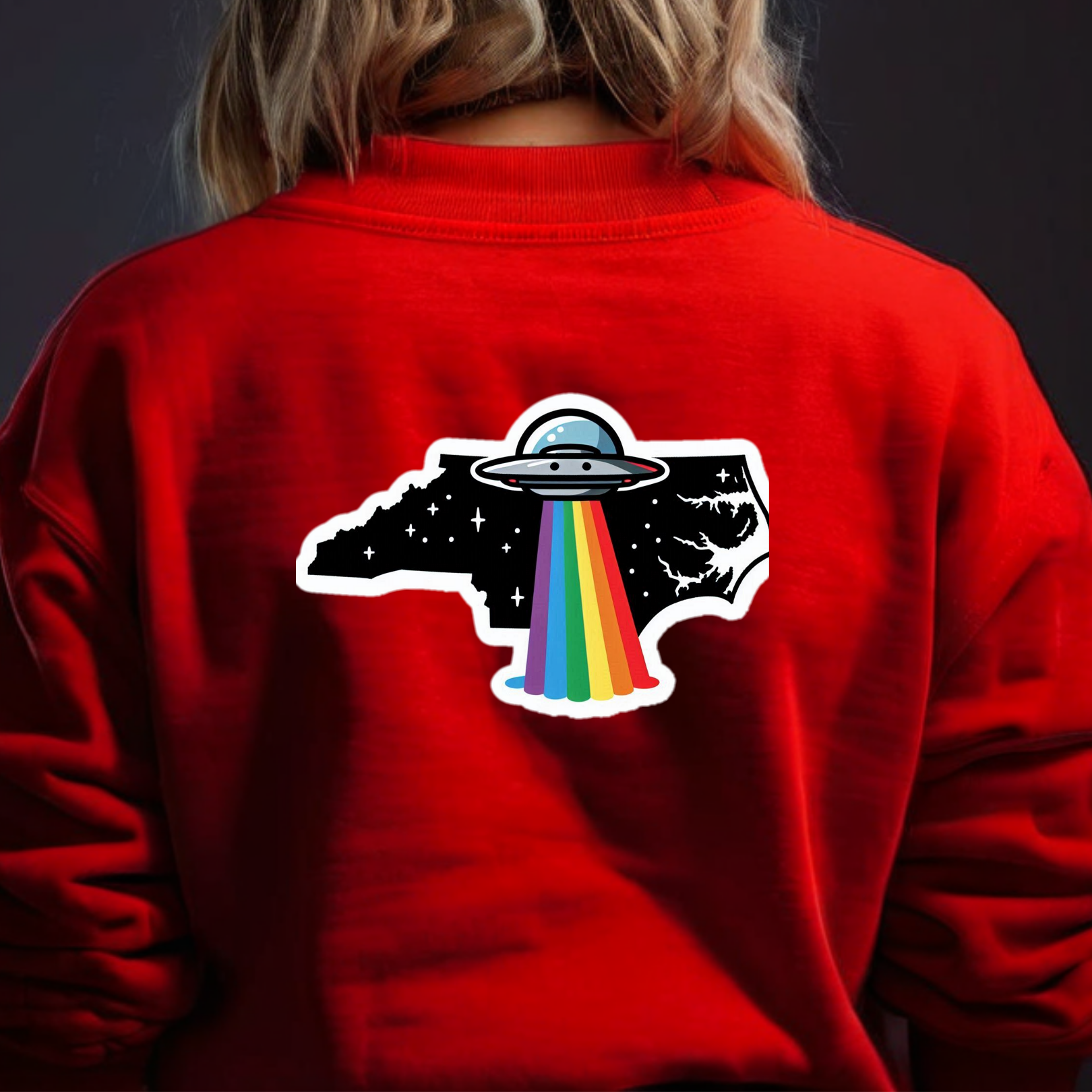 Show off your extraterrestrial pride with our Alien Pride States (and DC) sweatshirt! With this unique design, you can represent your state (or collect them all!) in a fun and quirky way. Stay comfortable and stylish with this one-of-a-kind sweatshirt. The unisex soft cotton sweatshirt is a seamless blend of comfort and style. The fiber is a blend of cotton and polyester. The seams have ribbed knitting. Durability is further assured by the inclusion of neck tape backing. As such, the collars are elastic and stretchy. Designed by humans with AI.
