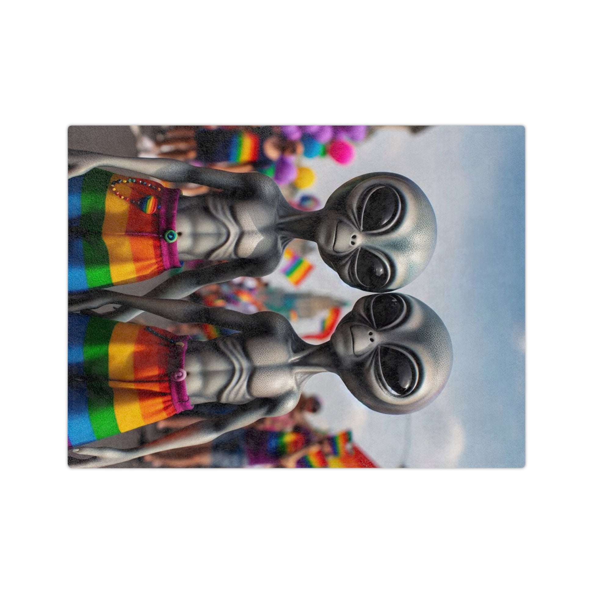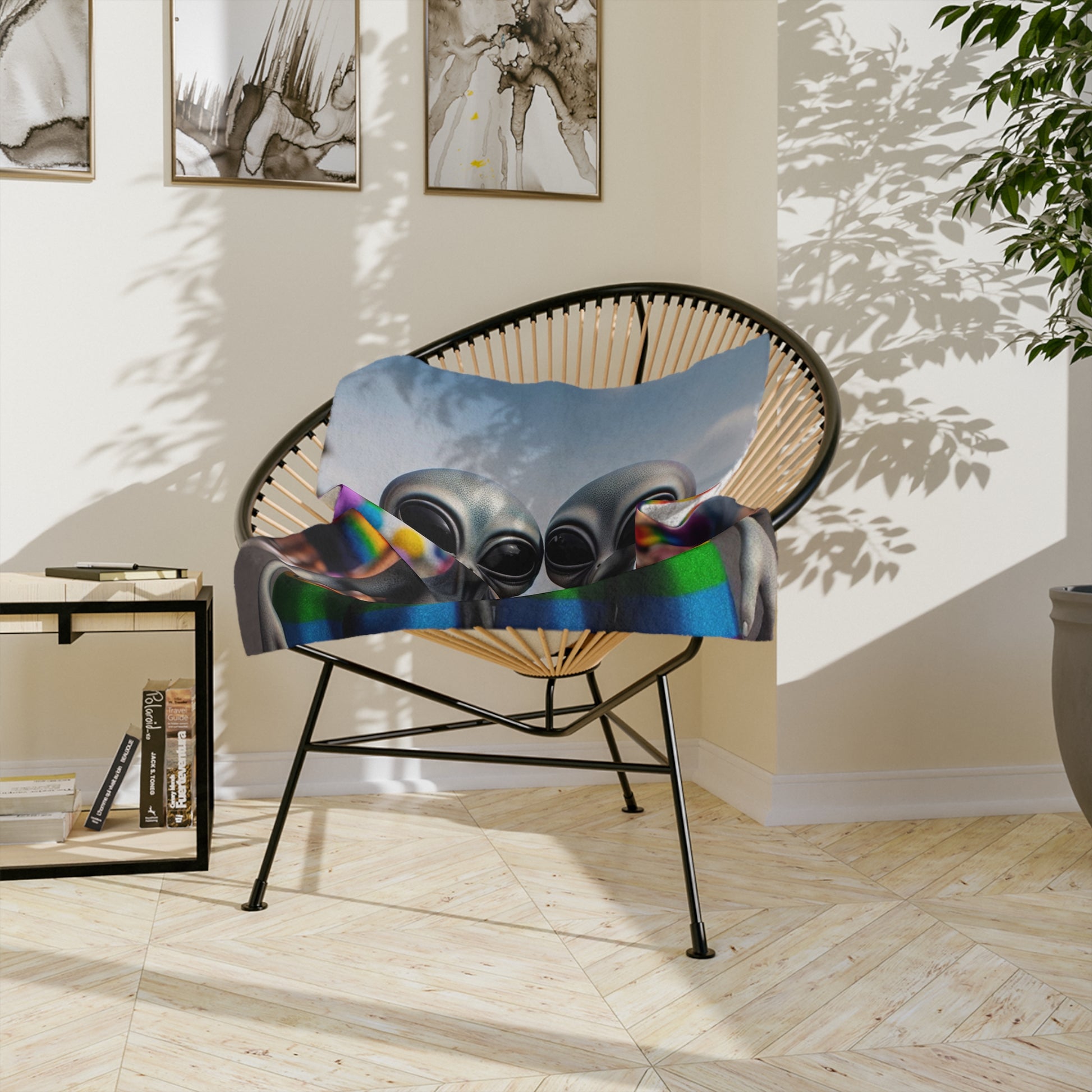 Each year, new PRIDE aliens are voted in, these are from 2024, St. Pete. Show your support! It comes in multiple sizes so anyone can enjoy it—toddlers, grown-ups, even your four-legged best friends. The 2" stitch makes sure the blanket's borders stay intact. It's made from a super-soft fleece that'll be decorated with your eye-catching designs in picture-perfect quality.