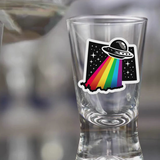 Introducing our custom States of Pride shot glasses, featuring Wyoming! We have all 50 and all the territories too! Made from high-quality, clear glass, these sturdy shot glasses are the perfect addition to any bar or collection. With a solid glass base and a standard 1.5oz size, they are not only functional but also aesthetically pleasing. Order yours today!