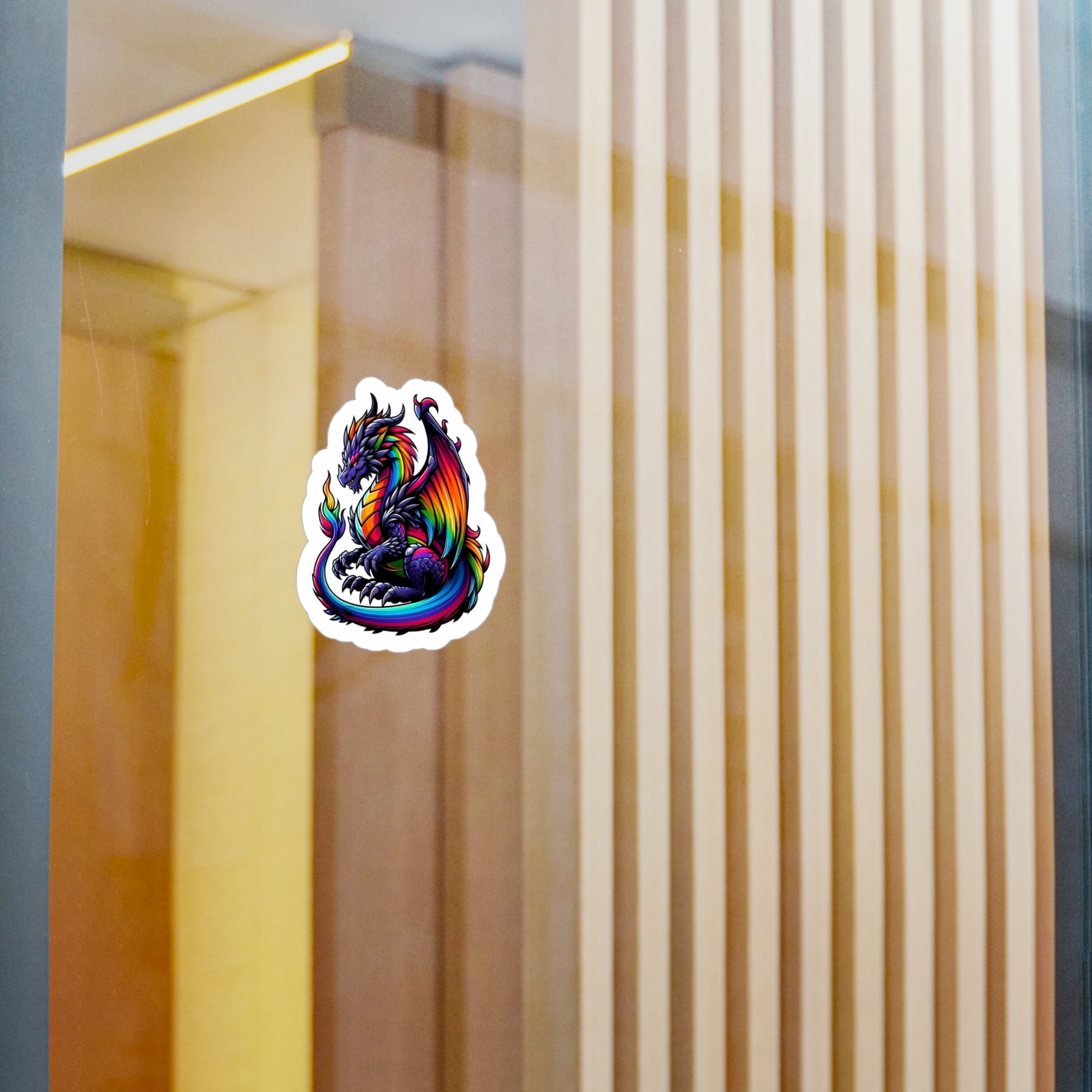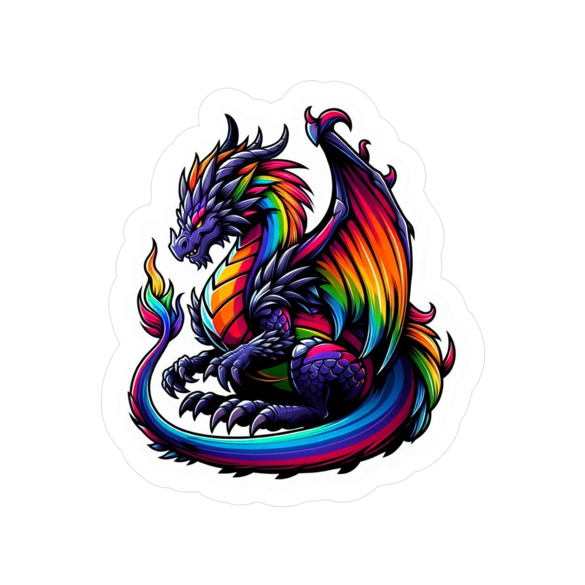 Wouldn't you love a Rainbow Dragon ready to defend your stuff? Stick them anywhere! Unleash your creativity with our high-quality, water and UV-resistant kiss-cut decals made of top-notch vinyl. Featuring a trendy satin finish and a removable adhesive that leaves no residue, these decals come in four sizes and are perfect for adding a unique touch to any surface. Choose yours now and make your art pop! Designed by humans, created using AI.