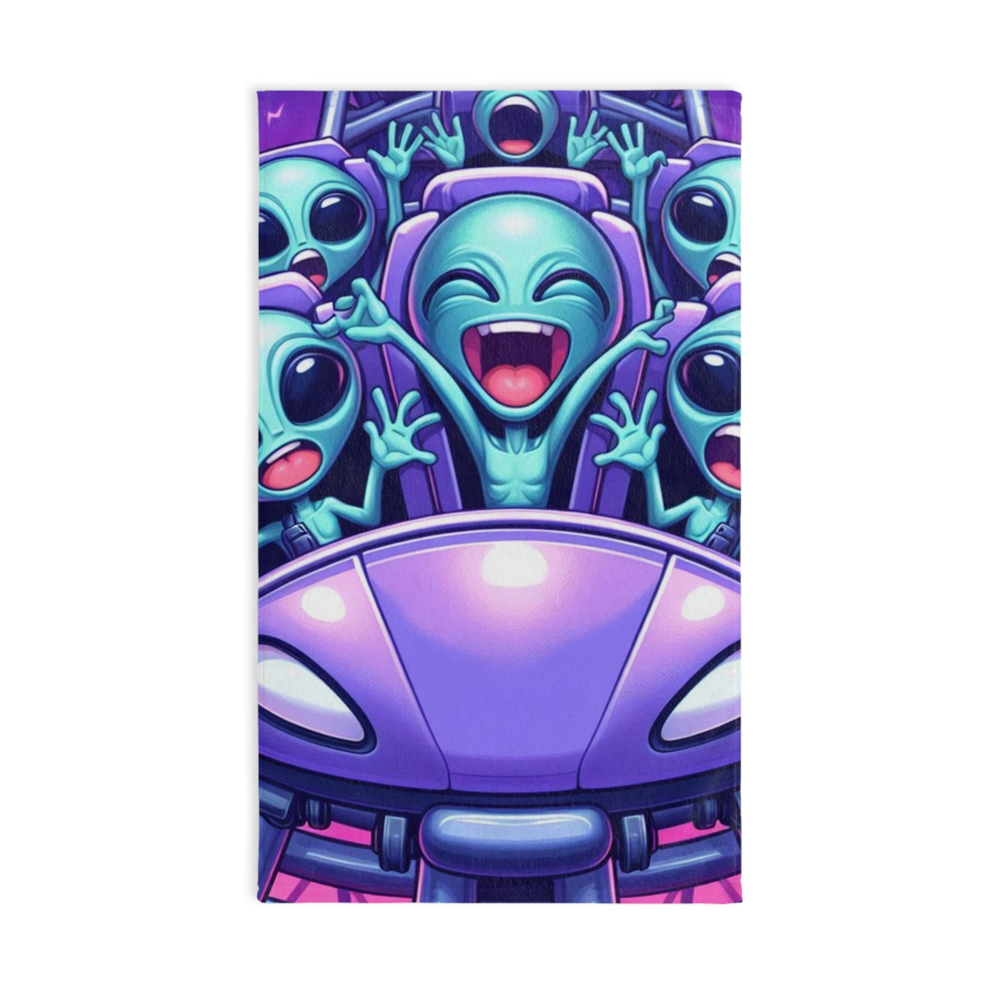 Get a new and unique towel for your gym bag, bathroom or car! Our Baseball Aliens towel is a perfect addition! Made with a polyester front that is a perfect canvas for printing and a soft cotton back, this premium hand towel is soft, light, and absolutely chic. .: Materials: 100% polyester (front), 100% cotton (back) .: One size: 16″ × 28″ (40.6cm × 71.1cm) .: Soft to the touch .: Print on one side