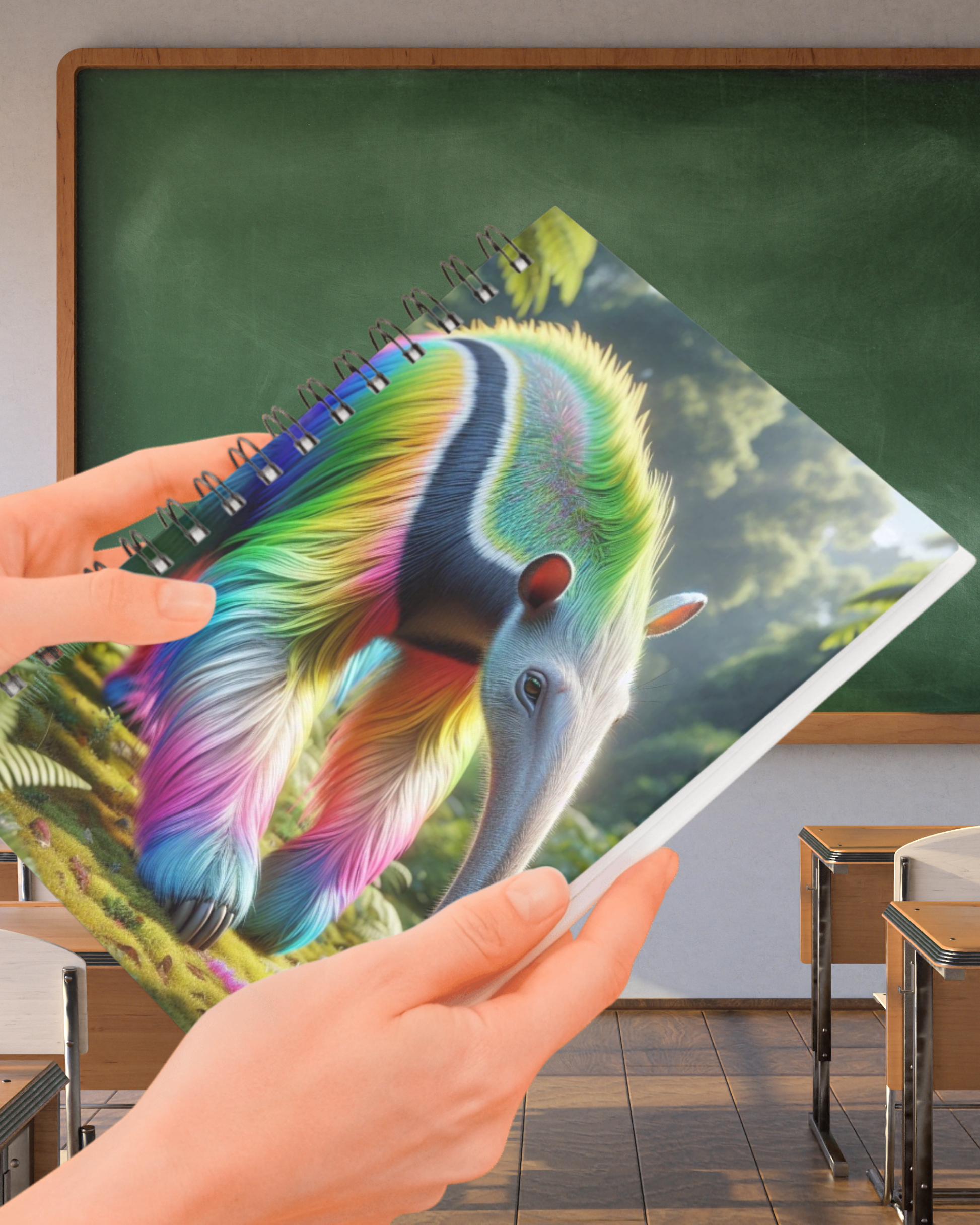 This colorful spiral notebook features a vibrant anteater. They are amazing hunters, using their proboscis to catch all the ants! It is ideal for animal lovers, nature enthusiasts, and anyone who enjoys colorful and unique stationery. The notebook is perfect for journaling, note-taking, or sketching. It is also great for back-to-school season, birthdays, or as a thoughtful gift for a loved one.